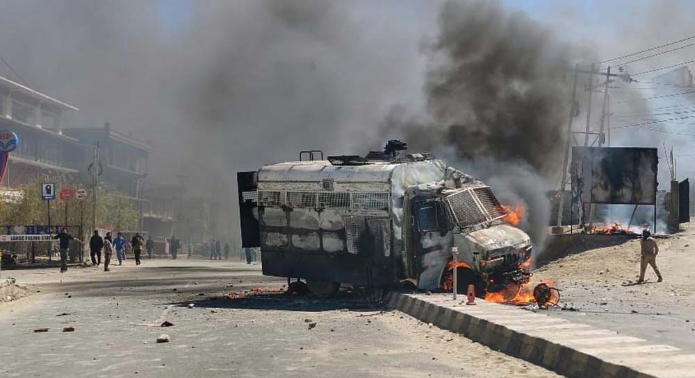 उच्च उचाइको सहर लेहमै पदयात्रा रोकेपछि प्रदर्शनकारीहरूले ढुङ्गामुढा गरेका थिए । त्यसपछि प्रहरीले गोली, अश्रुग्याँस र लाठी प्रहार गर्दा कम्तीमा चार जनाको मृत्यु भएको र धेरै घाइते भएको जनाइएको छ । प्रदर्शनकारीहरूले सरकारी भवन र सत्तारूढ भारतीय जनता पार्टी (भाजपा) को स्थानीय कार्यालयमा समेत आगजनी गरेका थिए ।