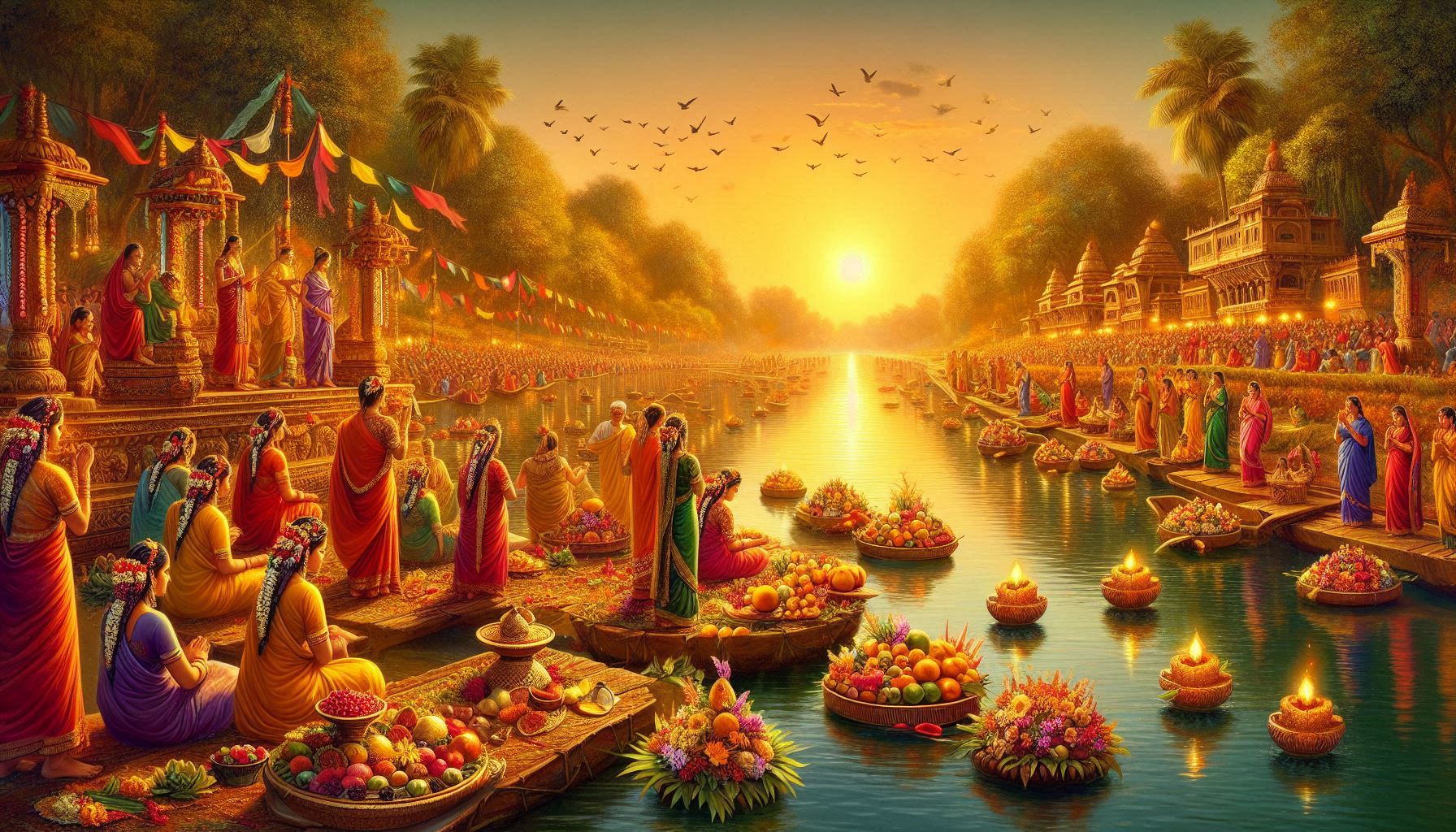 षष्ठीका दिन पक्वान्न, फलफूल, उखु र नरिवललाई बाँसको टोकरीमा सजाएर माथिबाट कपडाले छोपिन्छ । साँझपख बत्ती बालेर माटाको घडाको साथ गीत गाउँदै नदी वा तलाउका किनारमा गइन्छ । डुब्न लागेका सूर्यलाई अघ्र्य दिई प्रणाम गरिन्छ । अघ्र्य दिएपछि तीनपटक पानीमा डुबुल्की मारी मनोरञ्जन गर्दै त्यही रात बिताइन्छ ।